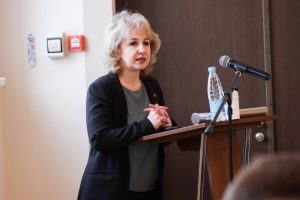 О возможностях и гарантиях для работников университета в соответствии с Коллективным договором рассказала начальник Центра кадровой и правовой работы Галина Сакомская. Председатель ППО работников университета Анна Сазонова сделала акценты на гарантиях и возможностях для членов Профсоюза. Врач-терапевт Марина Кравец напомнила профессорам о важности и значимости здоровья в жизни каждого человека. И, конечно, самой обсуждаемой темой стало внедрение искусственного интеллекта в образование и науку.